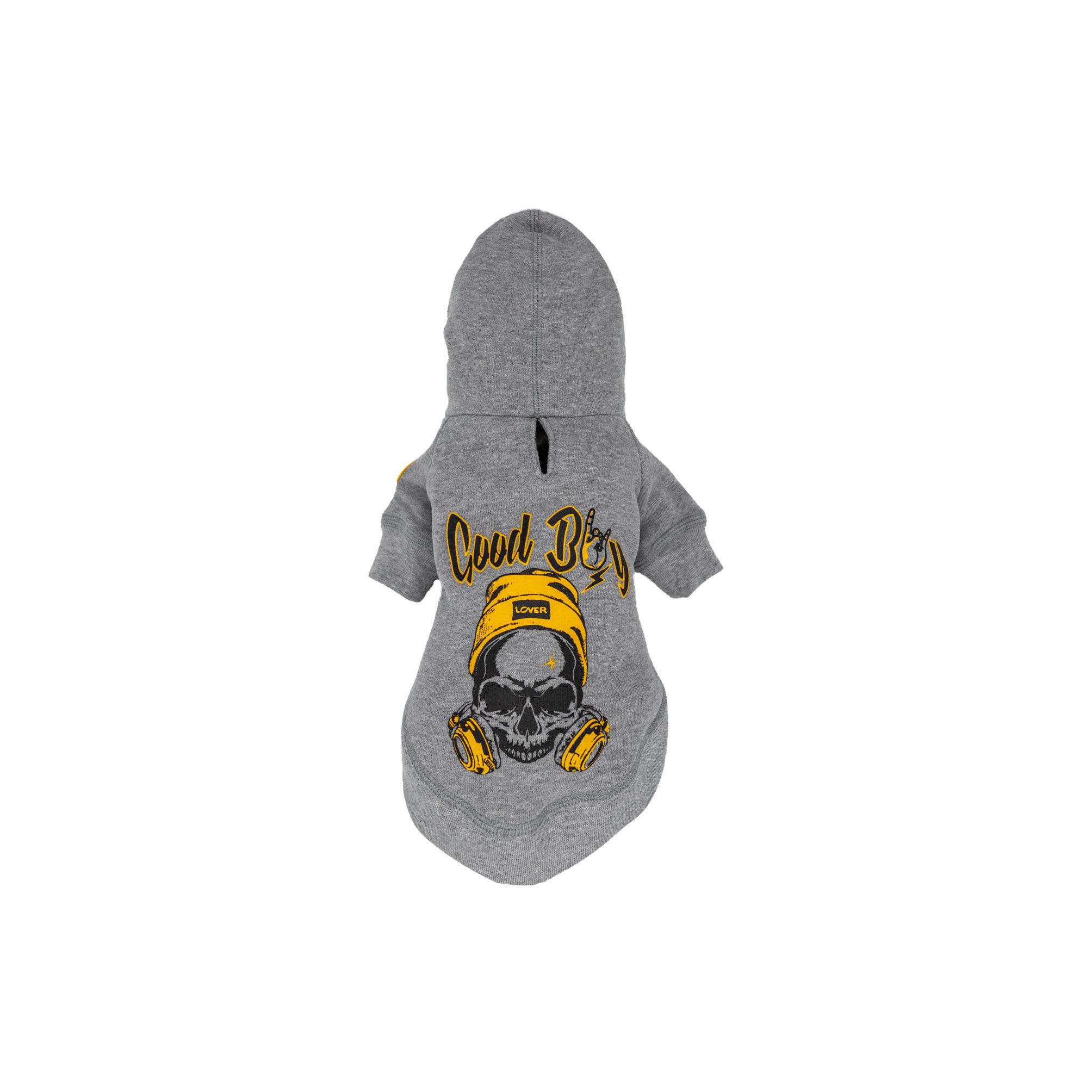 Ispirata alla moda urban, I.T.’S CUDDLE Good Boy è la felpa realizzata a mano in Italia in morbido cotone elasticizzato, ideale per proteggere dal freddo i cani più delicati, in modo specifico quelli di razza toy, piccola, media, incluso il bulldog francese. Disponibile in quattro taglie, grazie alla sua linea over con cappuccio assicura perfetta vestibilità, per proteggere senza infastidire gli amici pelosi. Una vera e propria coccola perfetta per affrontare i primi freddi, I.T.’S CUDDLE Good Boy si distingue per la stampa spessorata in stile punk con la grafica di un teschio.