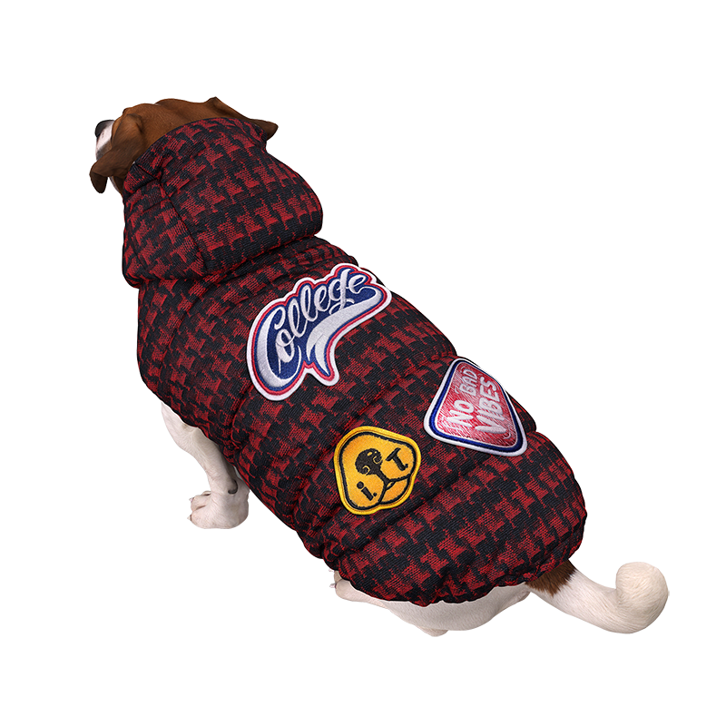 I.T.’S FAMILY Brit è il giubbotto imbottito dalla linea attillata, con cappuccio per cani di media e piccola taglia. Ideale per le giornate più fredde, disponibile in 4 taglie, dalla S alla XL oltre al conformato per bulldog francese. I.T.’S FAMILY Brit è realizzato a mano in Italia in tessuto jacquard laniero e con applicazione di patch ricamati. Il cappuccio si caratterizza per le aperture laterali che lasciano libere le orecchie. L’imbottitura è Primaloft® Silver Eco, in poliestere riciclato.
