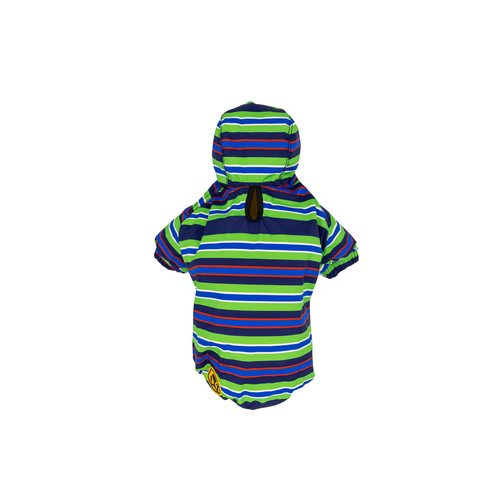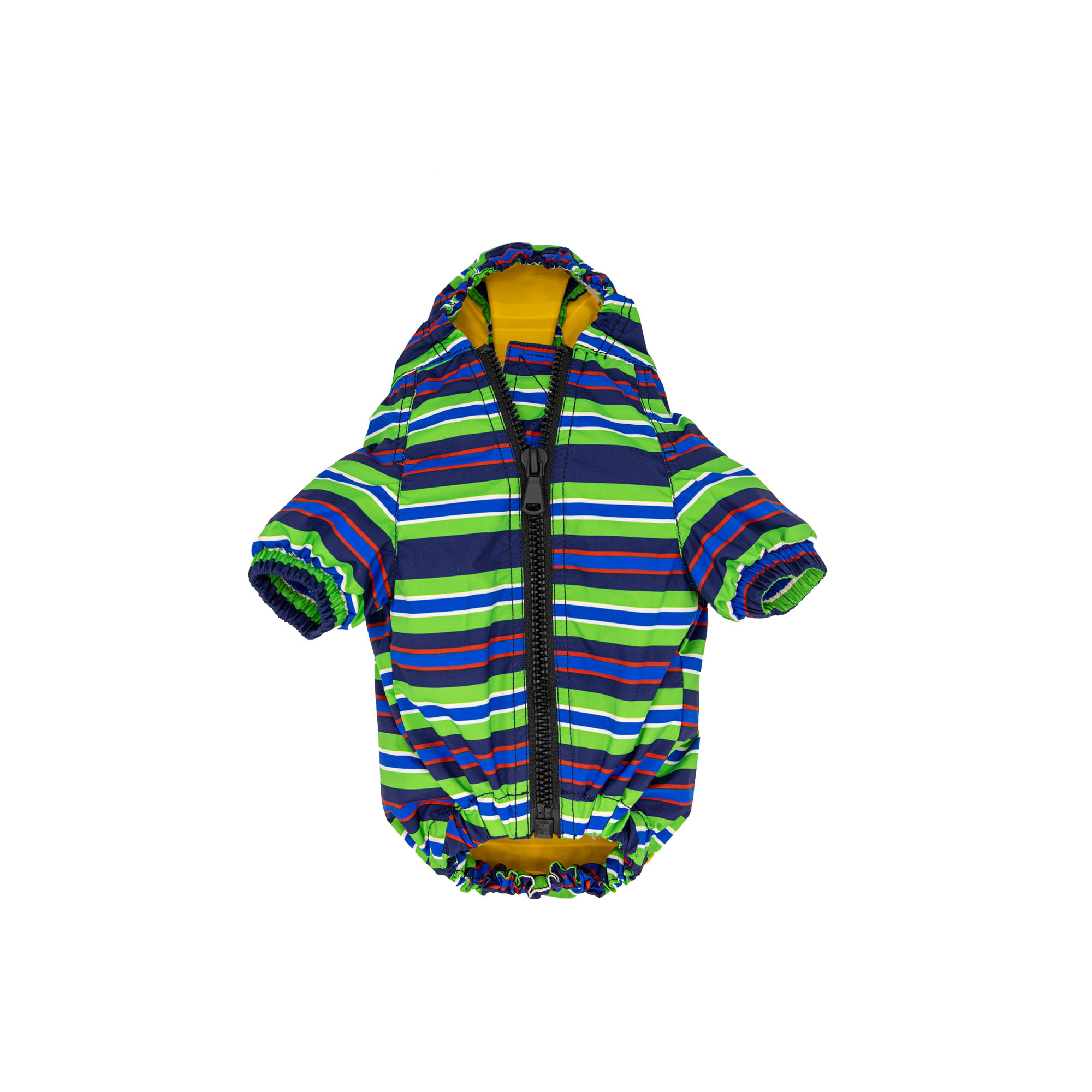 Pensato per quattro zampe e padroni dallo stile impeccabile, l’impermeabile per cani 100% Made in Italy I.T.’S Rain Coat Everly è un guscio protettivo perfetto per affrontare le piogge primaverili e gli acquazzoni estivi. Disponibile in 5 taglie, dalla S alla XL e XXL che vestono anche il bulldog francese, I.T.’S Rain Coat Everly è realizzato a mano nel classico tessuto stampato rigato reso contemporaneo dall’abbinamento delle diverse nuance, verde, bianco, blu e rosso con la membrana antiacqua e antivento color giallo. E’ dotato di chiusura a zip, goccia sulla schiena per far fuoriuscire il gancio del collare per il guinzaglio ed elastico soft touch sulle zampe posteriori per stabilizzare la vestibilità.
