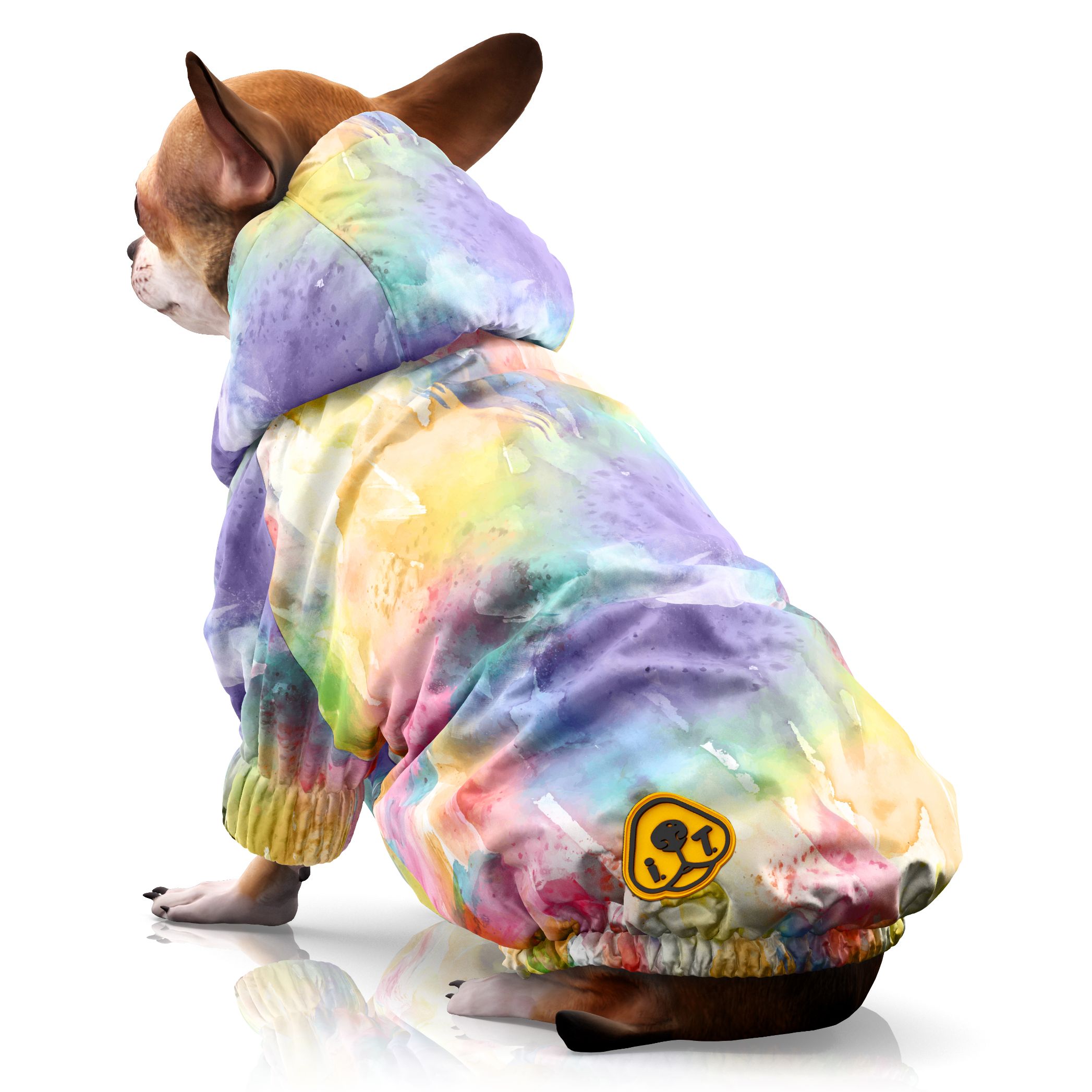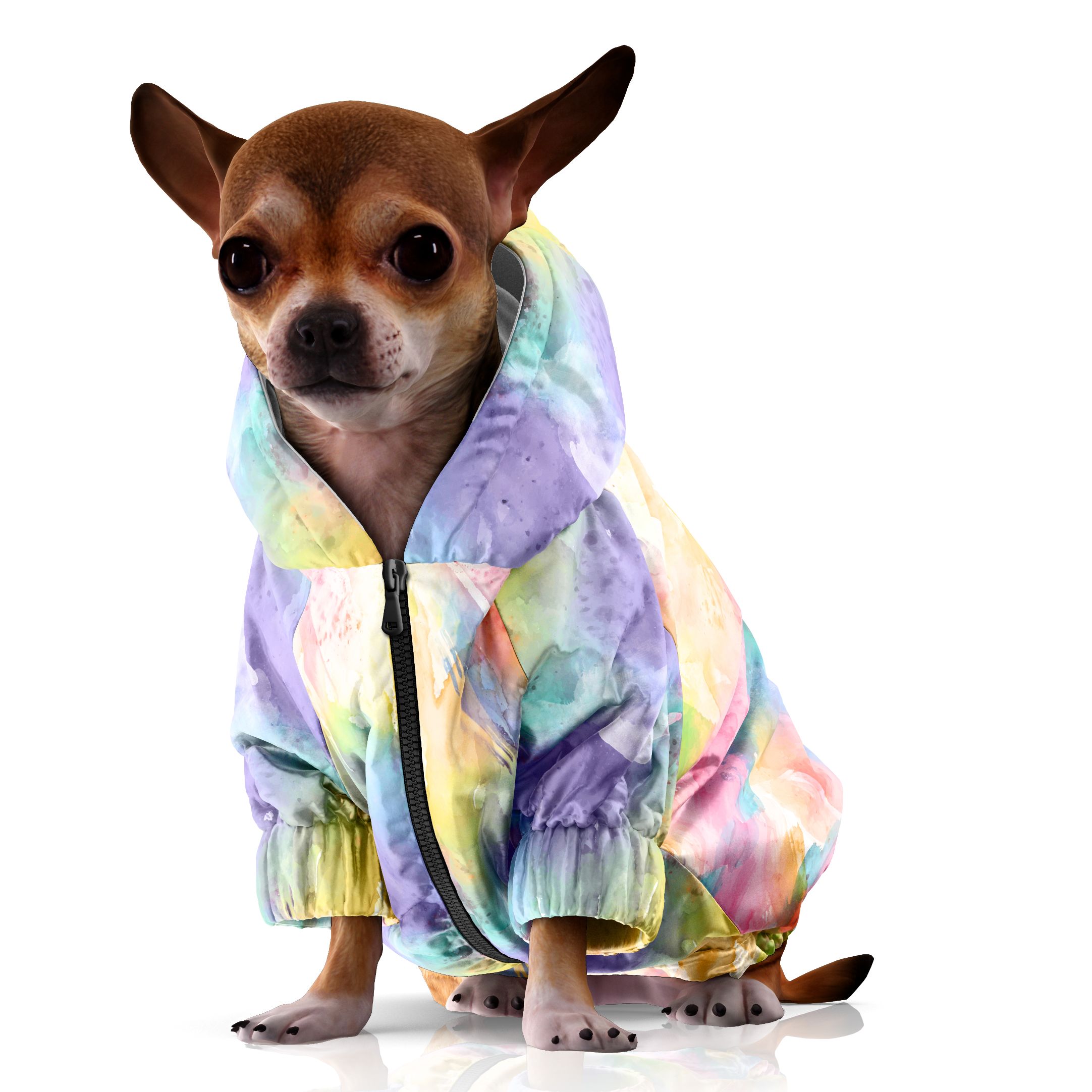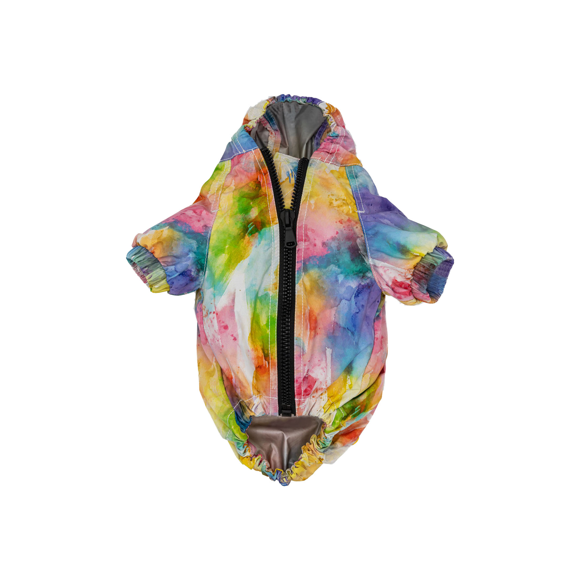 Delicata fantasia effetto acquarello per l’impermeabile 100% Made in Italy per cani I.T.’S Rain Coat Waterly. Un guscio protettivo perfetto per affrontare le piogge primaverili e gli acquazzoni estivi specie per chi ama trascorrere le vacanze in montagna. Disponibile in 5 taglie, dalla S alla XL e XXL che vestono anche il bulldog francese, I.T.’S Rain Coat Waterly è realizzato a mano in tessuto stampato con membrana antiacqua e antivento color argento. E’ dotato di chiusura a zip, goccia sulla schiena per far fuoriuscire il gancio del collare per il guinzaglio ed elastico soft touch sulle zampe posteriori per stabilizzare la vestibilità.